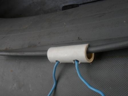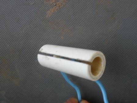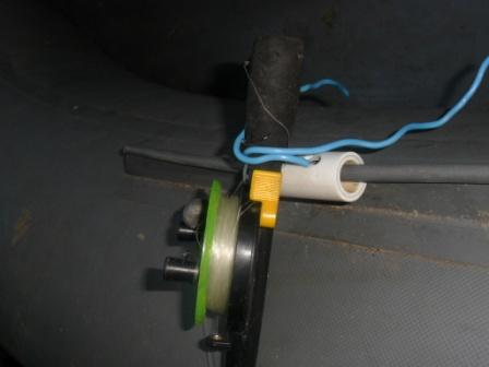 В виду того что переднее сиденье в лодку я частенько не беру- и места так побольше и тащить легче,придумал вот такую нехитрую приспособу удочку к борту крепить. Это полипропиленовая труба 25 диаметра разрезанная вдоль оси.