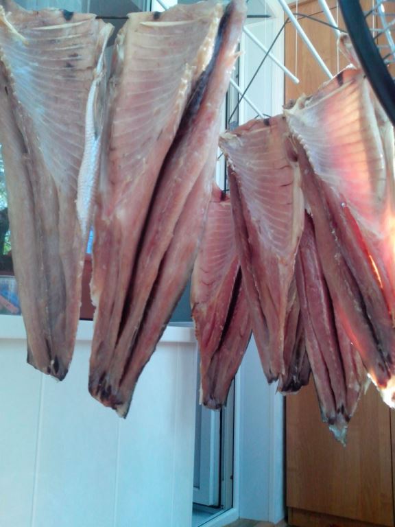 Для хорошего (равномерного) просола больших рыП обязательно полосовать (под ребром до шкуры и вдоль по спине, на фото видно). Рыбу не чищу.