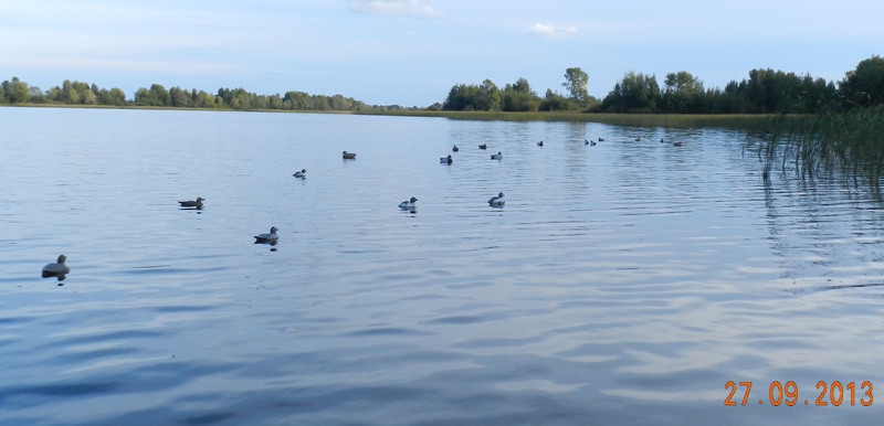 .После работы на всех парах на воду,(о/х Динамо),успел и накочать лодку и переплыть и расставиться, но можно было и не торопиться  . Итог: видел 5 крякашей стороной,  и пара уже по темному в чучелах оказалась, выплыли с камыша.  Вся утя жива,патроны целы