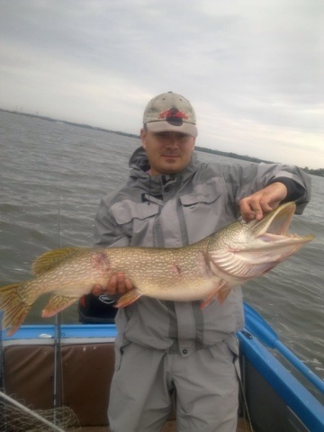Сегодня,утро, Волга. Ветер слабый, но менял направление три раза. Судачки околокилошные предпочитали белую резину, причем эффективней работал отводной. Под конец рыбалки около 10.00 взяты две щучки на 5 и 7 кг, при этом последняя поднята на отводной поводок леска 0,25 мм Адреналину от такого поднятия хапнул, повезло что крючок вошел в край губы.Жереха сегодня не видел.....