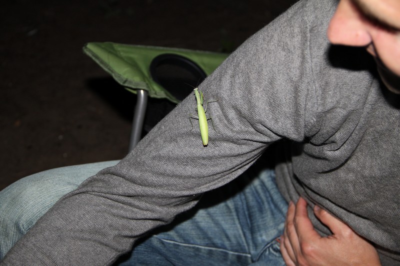 . На улов не надеялся, исходя из прошлого опыта. Но посидеть в темноте под звёздным небом и звездопадом... Глубина 1,5м пляжный вариант. Ужение с 0.00-8.30. Ночью "хороший клёв" летучей мыши. Как ни старался, всё равно задевают леску. В итоге по рыбе 3 карася с ладонь и с десяток густеры мелкой и подлещика до 300 гр. В плен никого не брал. Прикорм с прошлой рыбалки. 2 донки (горох и бойл) - тишина. Федя (червь, опарыш). Вечером был, невероятной красоты, закат. Фото не передаёт всю красоту. И в качестве гостя нас навестил богомол. Мы ему утром скормили осу, а потом на волю.