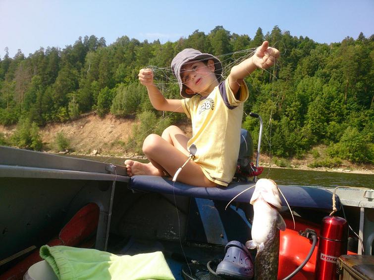 воскресенье кама кольцо. думаю сын спин уже освоил пора и со старейщими дедовскими способам ловли знакомить. тяги нуль. приспособил под закидуху. без запутываний уж не обошлось, но 6 годков пока простительно. младшой потихоньку приспособился, начал потаскивать....под диалоги между дедом и внуком о рыбалке, речке т.д. уснул я вообщем...проснулся от радостного вопля))): - папа,я сома поймал!!!
