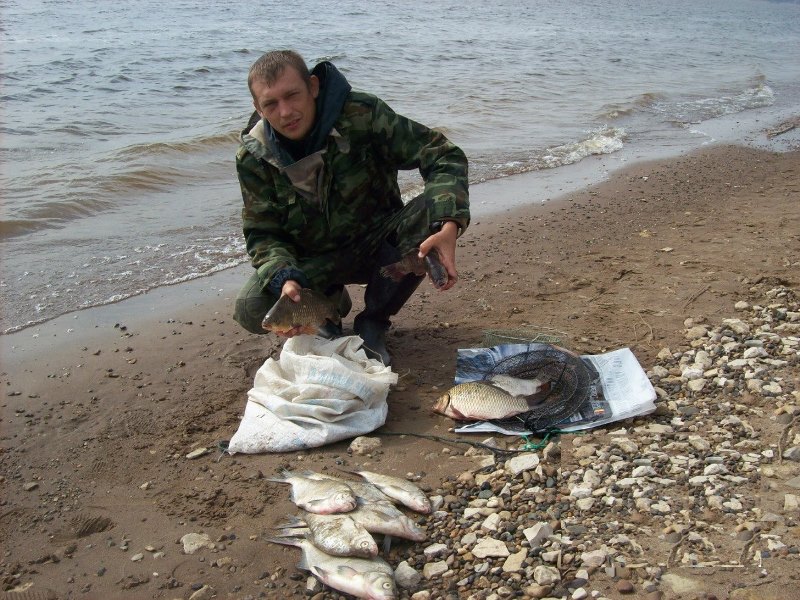 Вчера опять Кама и опять таки Сорочка. волна, Волна и еще больше ВОЛНА. И так весь день. на воде с 9.00 до 18.00. Попа плоская, в лодке - бассейн из-за волны, переодически перехлестывающий через борт.С утра-ноль, нет тяги - нет рыбы. После обеда-тягу дали вместе с рыбой. Лещ до 1.5кг. и один сазанчик около 1кг. Удочка-бортовая, насадка - червь, кукуруза. Отловились не плохо, промокли до труселей правда, но все ровно довольны. Пока в отпуске, думаю, что не раз еще там побываем.