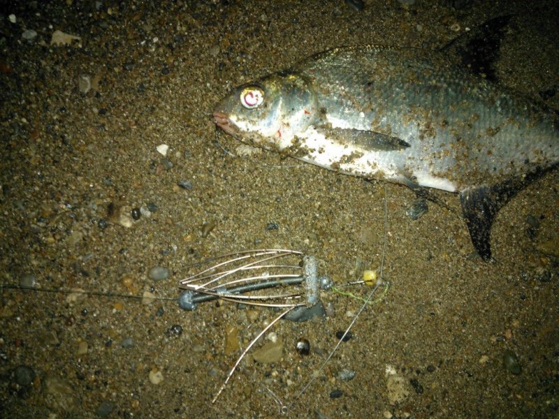 На донку ни фига. Горох немного не пропарился и был жестковат. Мамалыгу насаживал в виде шарика-бойлика по-крупнее. Хлеб тоже. Видимо мелочь теребила. Поклёвки были невнятные. Улова не было.
