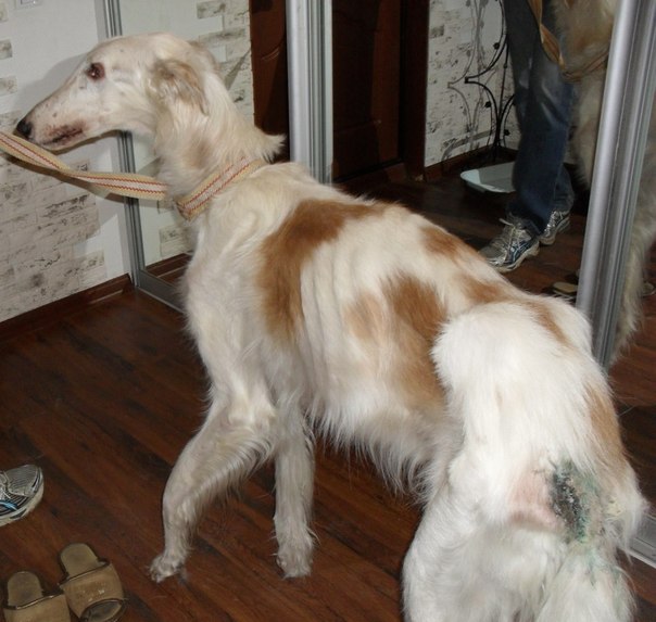 Ситуация по русской борзой очень сложная... После поиска хозяев, люди были не рады, что их нашли. Ситуация по собакину. Он живет в семье, где еще две борзые и две салюки. Хозяйка - не профи, просто так взяла. Всю жизнь, именно этот собакин был нелюбимым... Представляете, что сейчас, когда ему нужна помощь и тепло... Она дала понять, что с радостью отдаст этого собакина. Пес готов жить в семье, где его будут любить - он очень тятентся к ласке... Пока наша Лариса была в клинике, собакин стоял, прислонившись, около ее ног - то ли от слабости, то ли от горя.... "