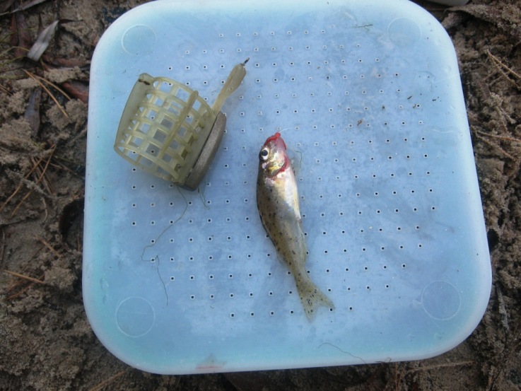 Из наживок – пробовал мотыль, опарыш, червя и кукурузу (ее даже кто-то немного пытался подгрызть, видимо крупная плотва). В основном работал мотыль, червя же безнаказанно сдирали с крючка. Поводки не очень толстые – 0,12мм, некрупные крючки.