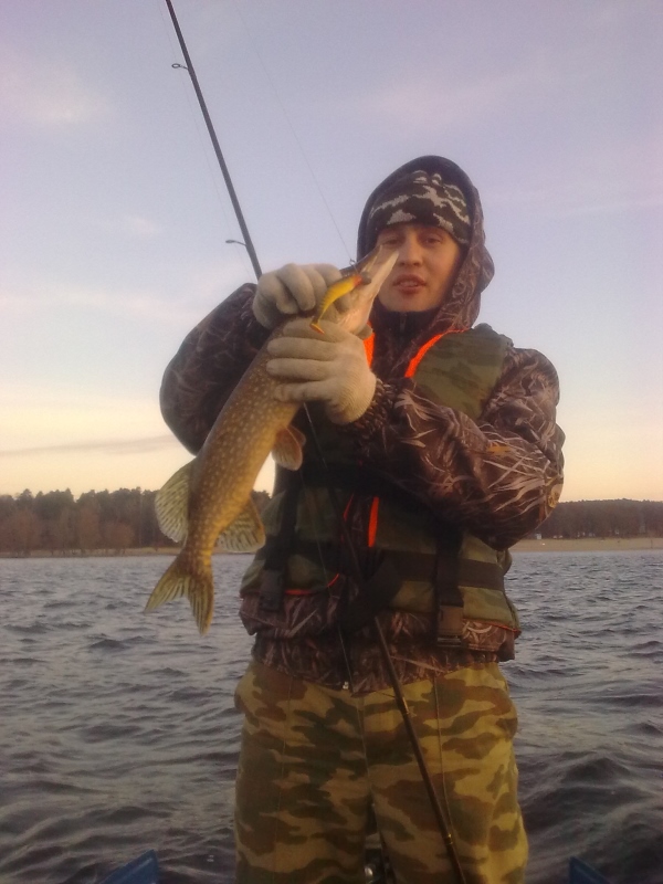 Вчера, Кама-Шешма. Наконец-то после стольких недель непогоды выдался относительно нормальный день для закрытия сезона. С утра почти штиль, тепло, с 7 утра уже на воде, еще только начало светать. поход по старым точкам, без долгих задержек, как летом....чутье подсказало именно такую тактику... 2-я, третья точка... Лосось... на второй точке у напарника ломается спининг, возвращаться за запасным уже далековато...продолжаем...третья, четвертая, седьмая.... лосось начинает ходить стаями...и уже на обратном пути встаю на точку, которую объехал... есть!
