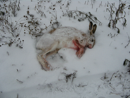 Сегодня тоже зайчика видел, даже на видео фотоаппаратом заснял. Но видео получилось не очень, ночью дело было. И было это в нашем городе. Потом его собак пять по следам стали искать, а он благополучно ушел. Так захотелось на охоту.