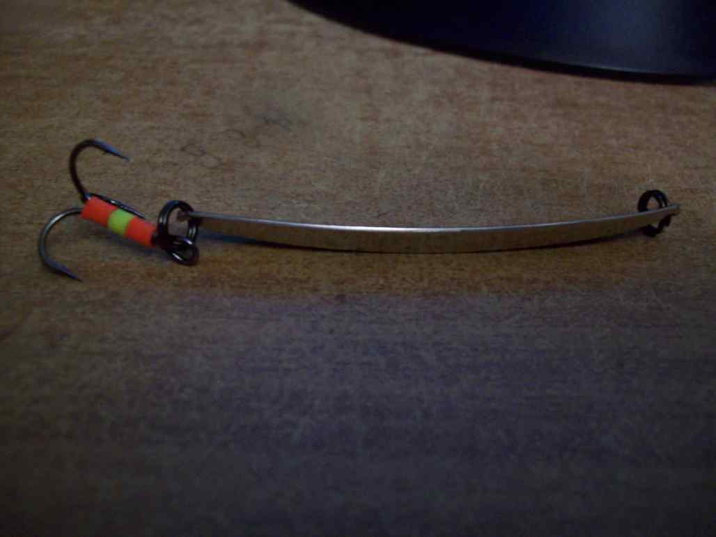 Блесна Володи Матвейчикова также бывает с тройником,и по зацепистости она обходит одностволку,хотя при хорошей активности окуня одностволкой проще работать,т.к. моментально можно снять окуня с крючка,а при этом экономится время и ускоряется темп ловли.