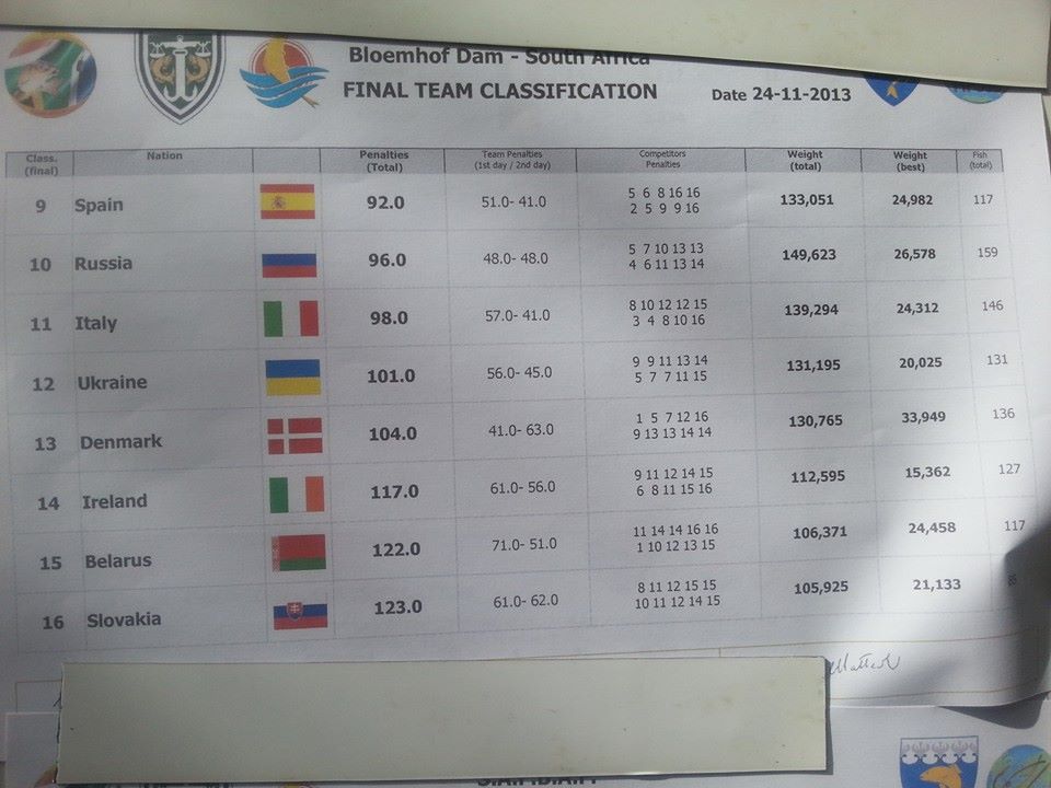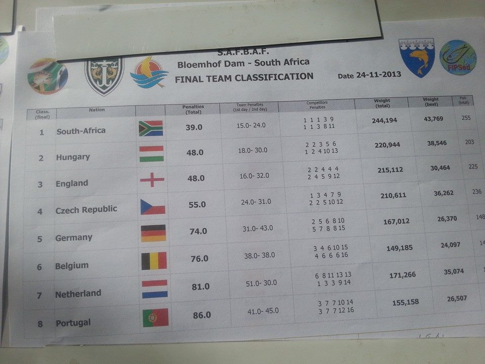 Re: Чемпионат мира по ловле фидером 2013 ЮАР (23-24.11.2013)