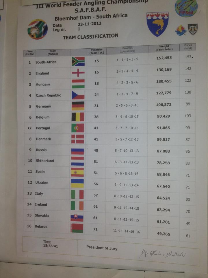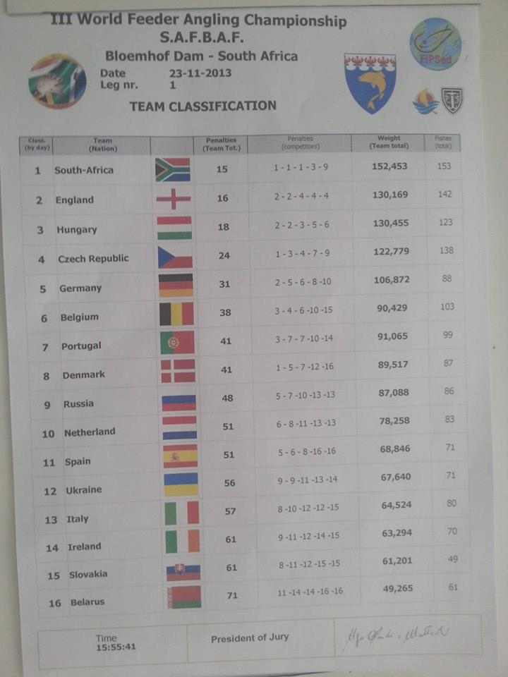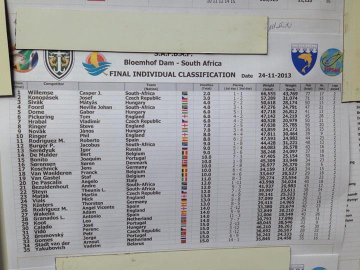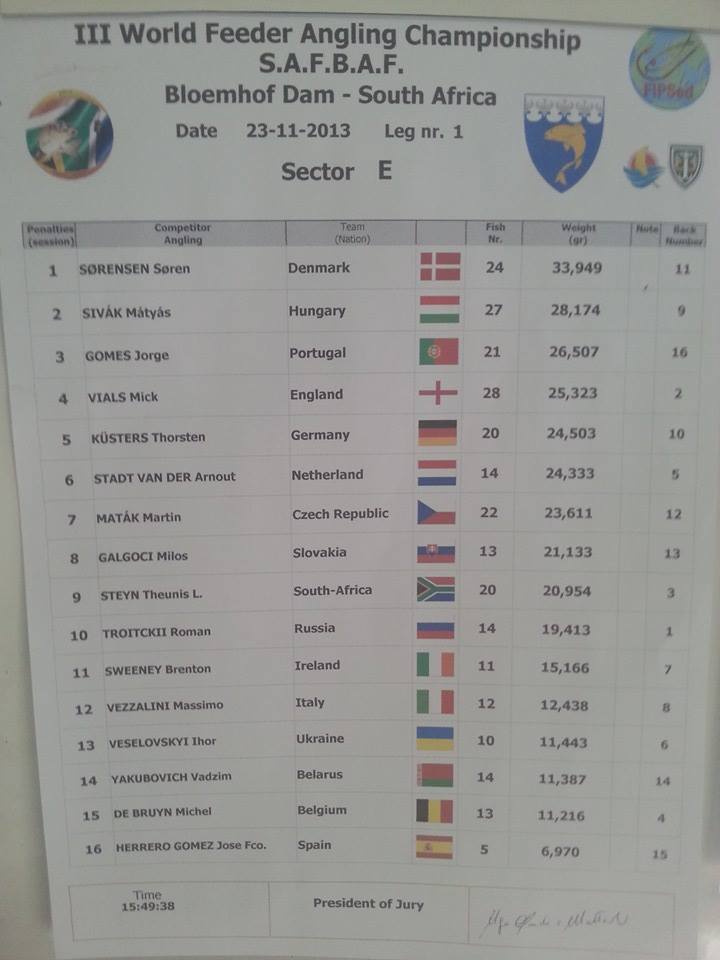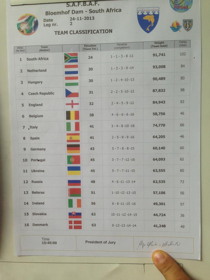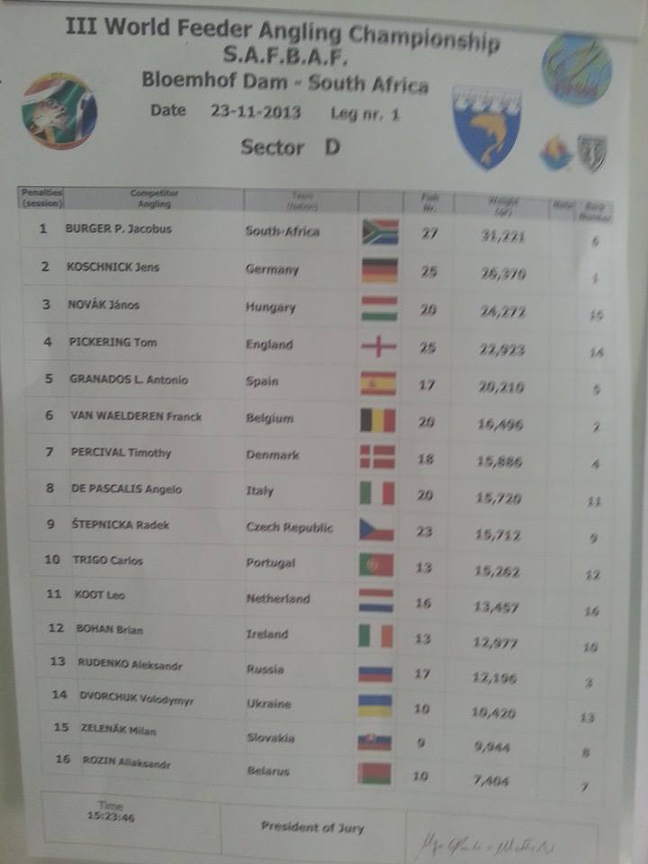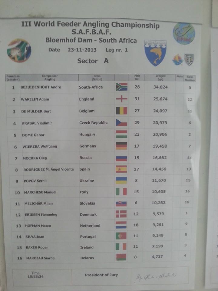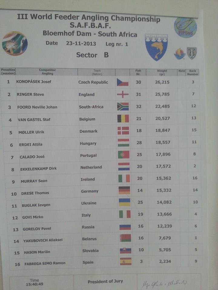 Re: Чемпионат мира по ловле фидером 2013 ЮАР (23-24.11.2013)