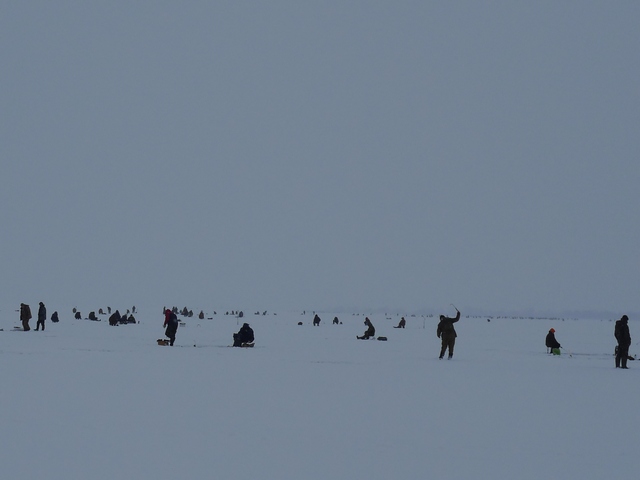 в 8 потихоньку начали выходить на лед.народу порядка 60-80 человек