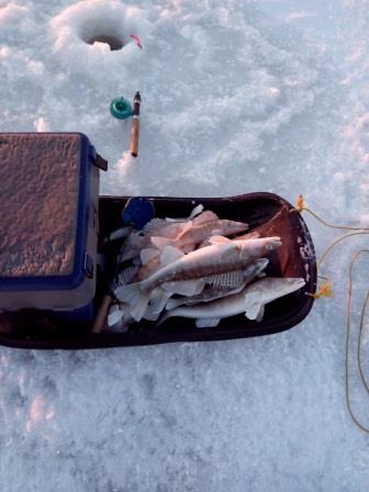 Сегодня с целью напугать деда мороза. Переправа З.Дол-Н. Вязовые работает как часы и через 20 мин мы на "кочке". Народу 0, 500 метров пешком до ближайших старых лунок. Клев начался в первые же 10 мин. и до обеда. Я на голый балансир, товарищи на прыща и мормышку с лепестком с подсадкой тюльки, глубина 5 м. без тяги. Много мелочи. Практически вся рыба с ударом. Взял домой 5 хвостов 500-700 грамовых. Крупняка не было. Мороз мешал только тем, что втоой раз на старую лунку не вернуться так как через 20 мин даже ногой тяжело пробить. По этой же причине "на стоячку не клевало", все на игру.