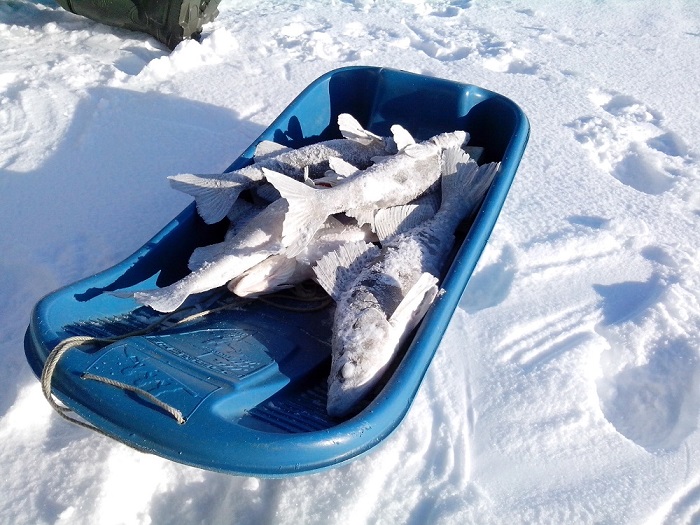 Брал жадно в заглот, те которые не травмированные отпускали. Мороз сильный, пока снимаешь-заледеневают.