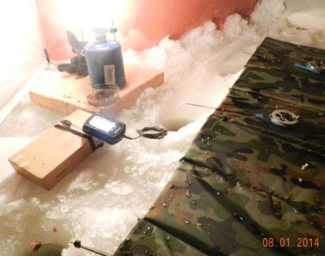 сегодня .на льду 8.30.после обеда увидел первую поклевку.
