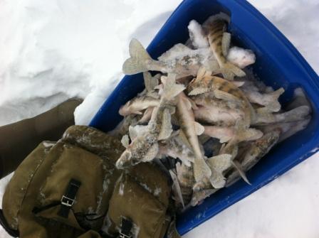 Рыбу приходится копать, хотя один мариец сделал всю рыбалку с одной лунки, причем лучше чем я. До этого мужики с базы неплохо берша ловили, но вот сегодня решили, что ловим судака)))