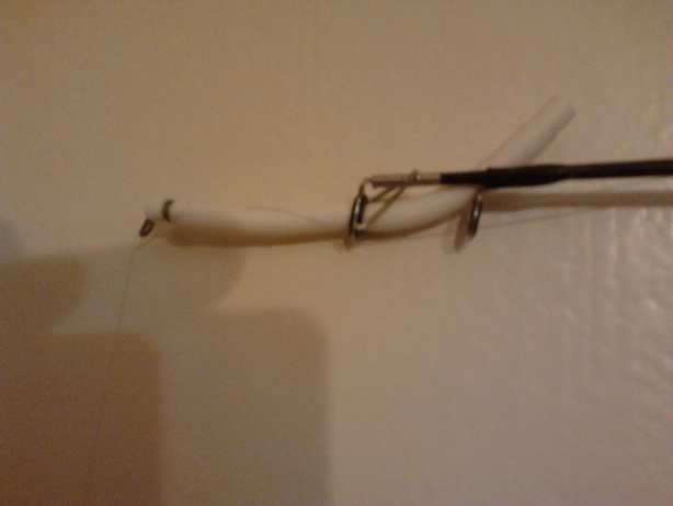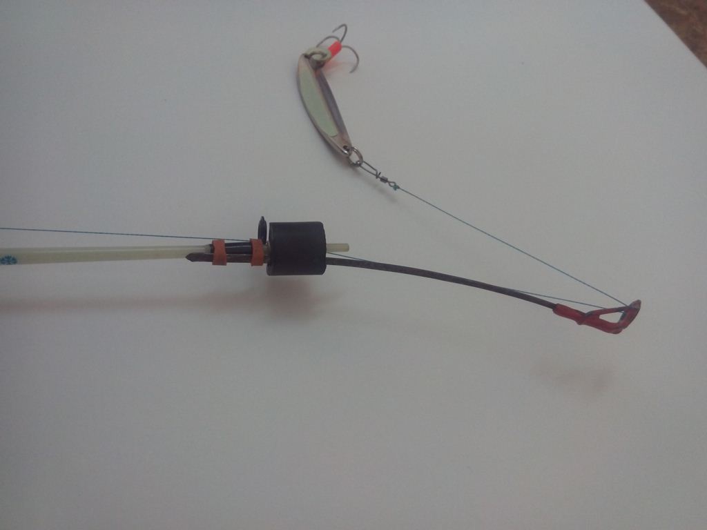 Долго перебирая различные варианты, добавляя к техзаданию еще и параметр компактности (для удобства транспортировки) и оперативности для (быстрого перемещения), пришел к необходимости установки на удильнике вот такого устройства, которое приматывается к кончику хлыста ниткой с секундным клеем