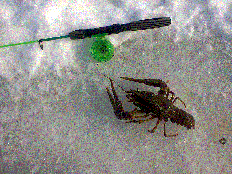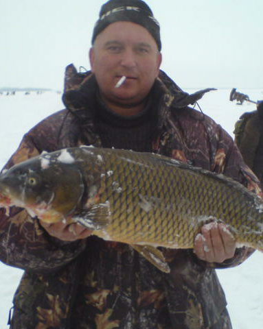 На десятой лунке кто то прихватил и отпустил и сразу зацеп....но зацеп ожил и тяжёлыми толчками по тихоньку пошёл наверх. В голове-леска не выдержит. Адреналин выше крыши,багра нет,подьехали знакомые ребята ,достали багор,ждём....Ближе к лунке есно амортизации уже никакой,а монстр стал активнее,чувствую не хочет в лунку. Вот уже показался поводок,всё думаю,завёл и....тут леска выпрыгивает наружу,думаю-сход,ни фига-карабин разогнулся и моя рыбина ушла не показав даже какого она рода -племени...Так что если поймаете её с кастмастером в 10 гр-знайте она(рыба) моя