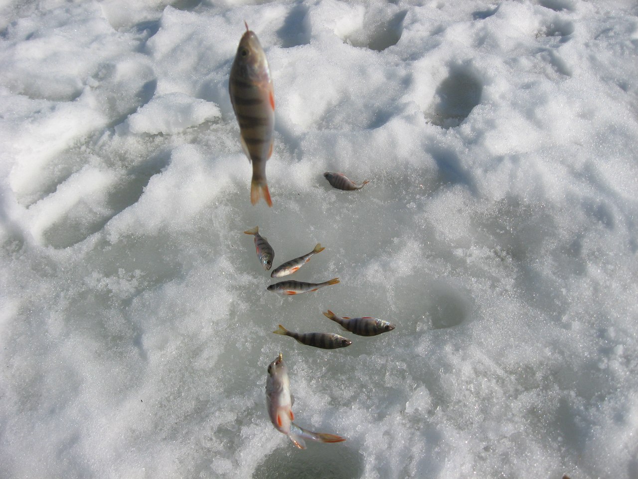 А на железки и джиги иной конструкции не брало у меня, и всё. Ramtat как уходили, НАЖАЛ НА КАКУЮ-ТО КНОПКУ, клевать перестало. Меня хватило минут на 30, я тоже двинул по тяжелым снегам домой.