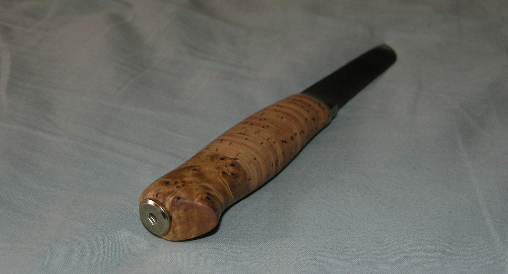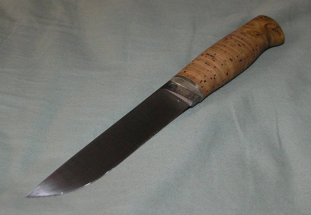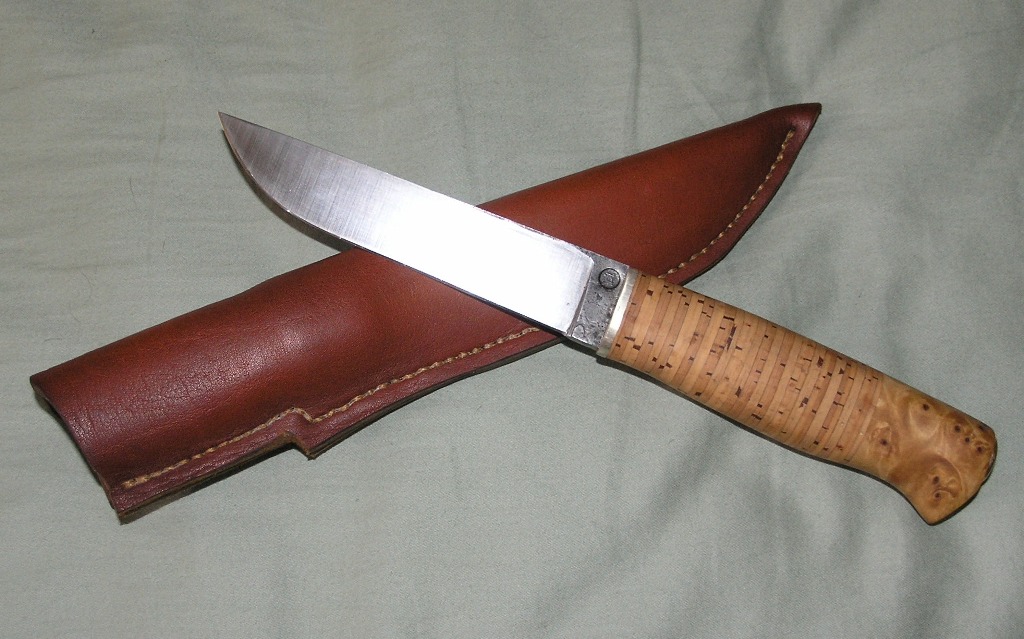 классический финский нож не имеет ограничителя - безопасность удержания в руке обеспечивается за счет бочкообразной рукоятки.Kurbor писал(а):и отсутствие упора- как то грустно пальцам будет, ежели сосользнет рука..