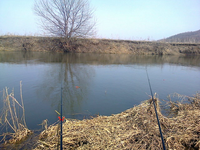 19.04. Меша Карадули фидер,удочка .леве водонапорный башни. решили с ездить открыть сезон, на мести были гдето около 6 но начили рыбалку в 7-8 так как со стороны водонапорный башни мостик затопила в ботинках не пройти,увидели