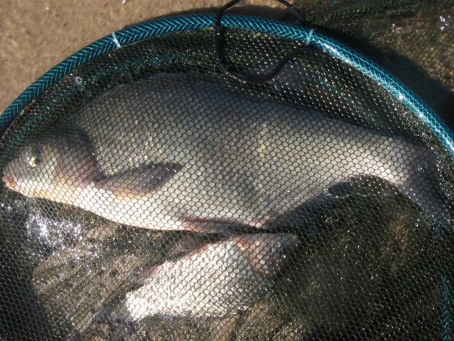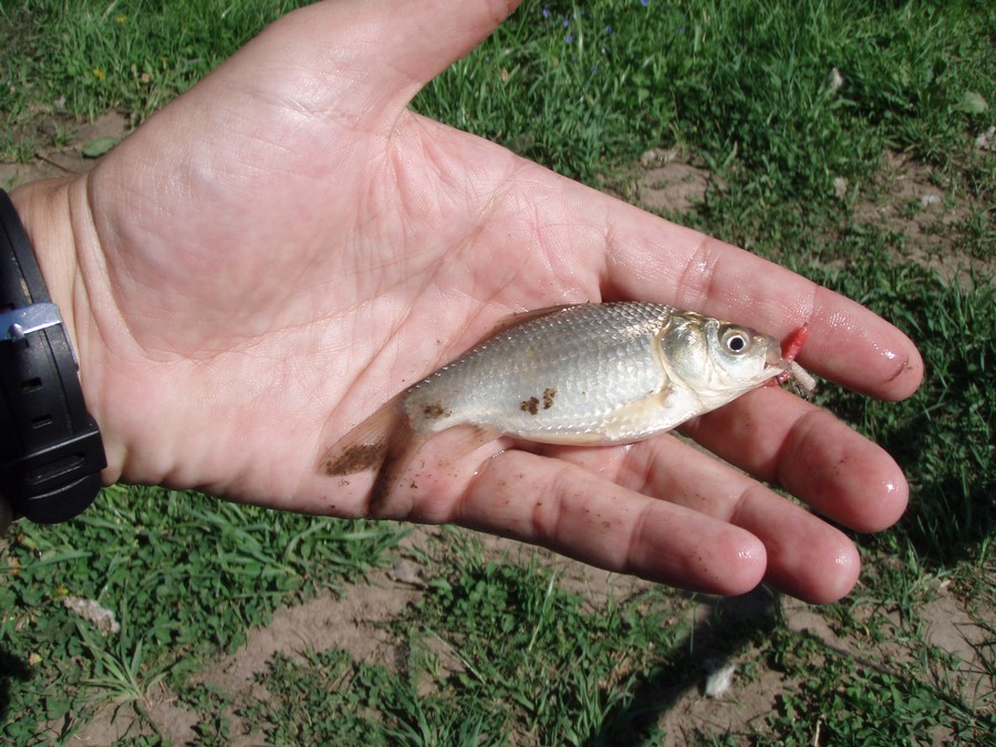 , так как вода была мутная. С 6.00-10.30 ловил на неё. Течение не сильное. Кормуху 43 гр. не сносило, но хорошо натягивало вершинку. Дистанция 30 м, глубина - хз, но не больше 2 метров. Червь и опарыш. Клевать стало сразу. После 2-х дежурных лаврушек пошла рыбка по-крупнее. Червь практически отдыхал сегодня. На укропно-чесночный опарыш рыбка отзывалась активнее. Больше на чеснок.