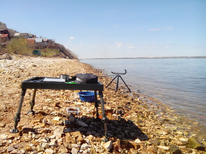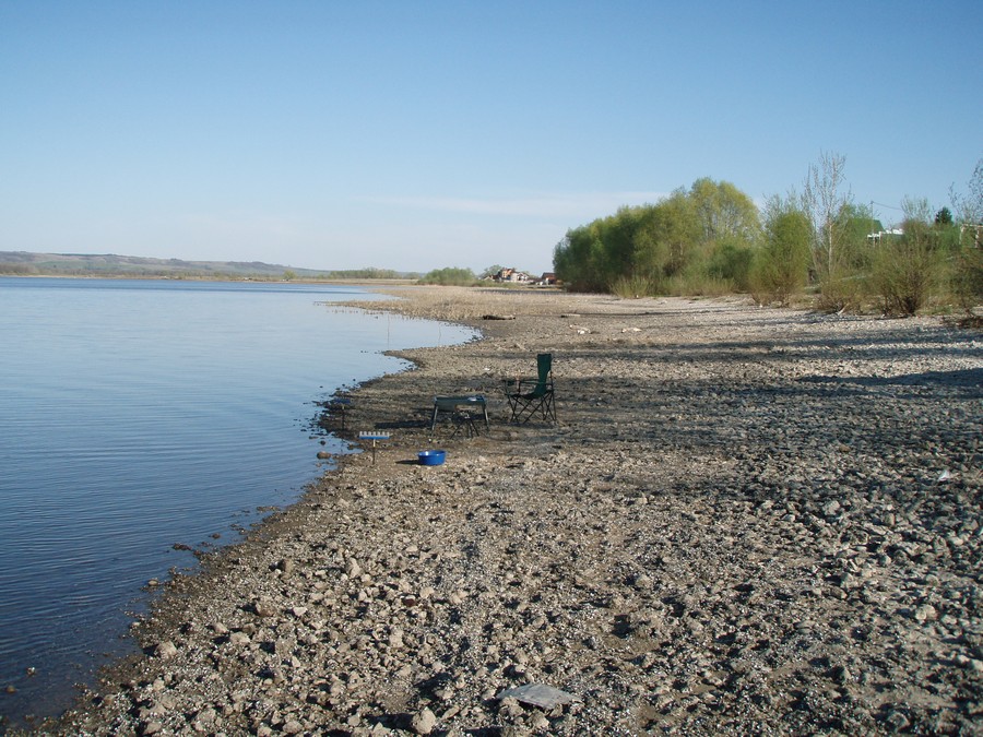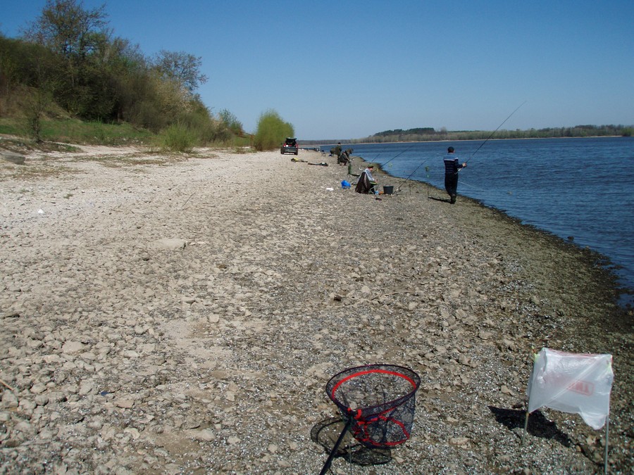 . Приехали в другое место, где в прошлом году кроме карасей и пару сазанчиков в принципе ничего не ловили. Берег заметно оголился на 8-10 метров (в сравнении с прошлым годом). По словам ночевавших здесь, за ночь вода ушла на 1 метр.