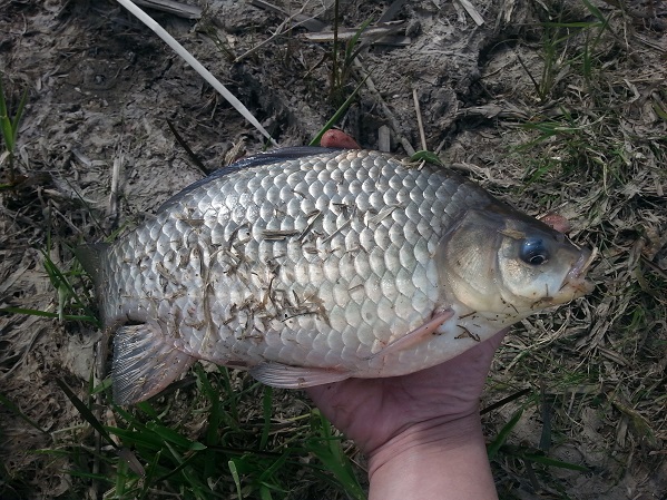 Густера размером чуть больше ладони, плотва меньше ладони, даже ёрш с икрой - все отпущены подрастать.
