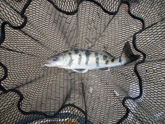 Воду сбросили заметно, дно прибрежной террасы оголилось метра на три. Снасть донная с грузилом-кормушкой, поводок 0,17 Platil Marine, крючок 10-го размера Cobra round. Прикормка сыпучая (без каши), насадка червь.