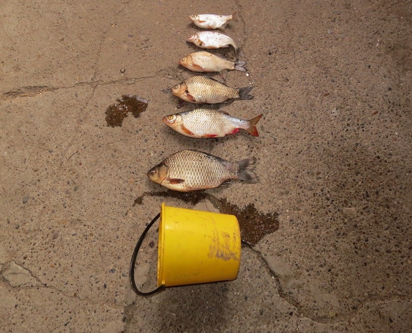 Вчера, Мёша, район Бимы, с 13-00 до 17-00, ветрище, как в аэродинамической трубе, пыль, песок, удочки ходуном, Ярило жжёт, семь карасей, выпроставшаяся прогонистая плотвица и такой же окунь, все на червя...