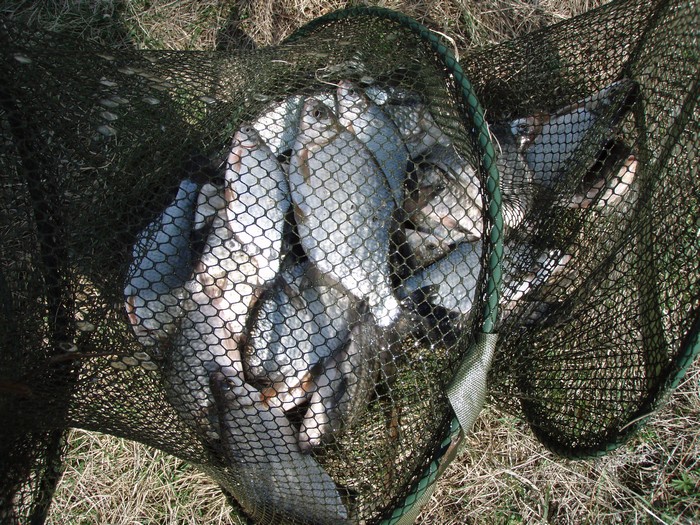 много мелкой с ладонь сорожки. Один лещ почти на двушечку.