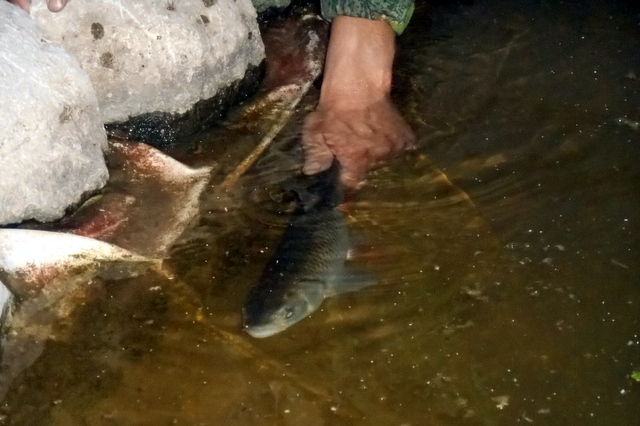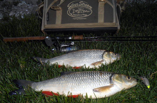 Вернулся к поплавочке, где почти сразу начались поклевки сопливого семейства. Мелочи не было 600г - 1200г в таком диапозоне. Насадка мотыль,опарыш. Глубина 4 м, течение слабое