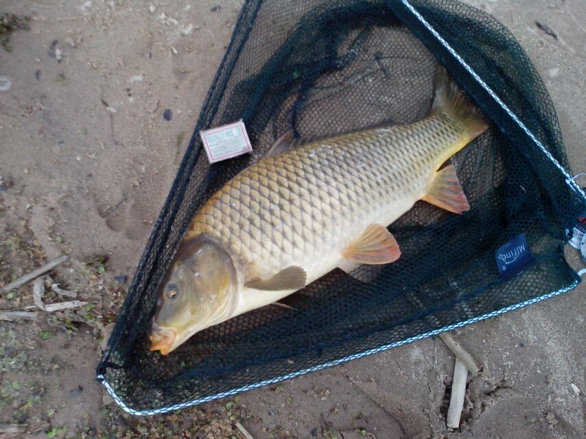 А далее начались поклевки на фидерные удилища, вот там пришлось попотеть, так как основная леска была 0,2, а поводок всего 0,12мм каждый сазанчик имел все шансы избежать моего сачка, 15 минут упорного перетягивания лески и в итоге он в сачке, весы дома показали 3,2кг. Скажу честно рыбачить на такие деликатные снасти одно удовольствие, ошибок на такой леске рыба не прощает.