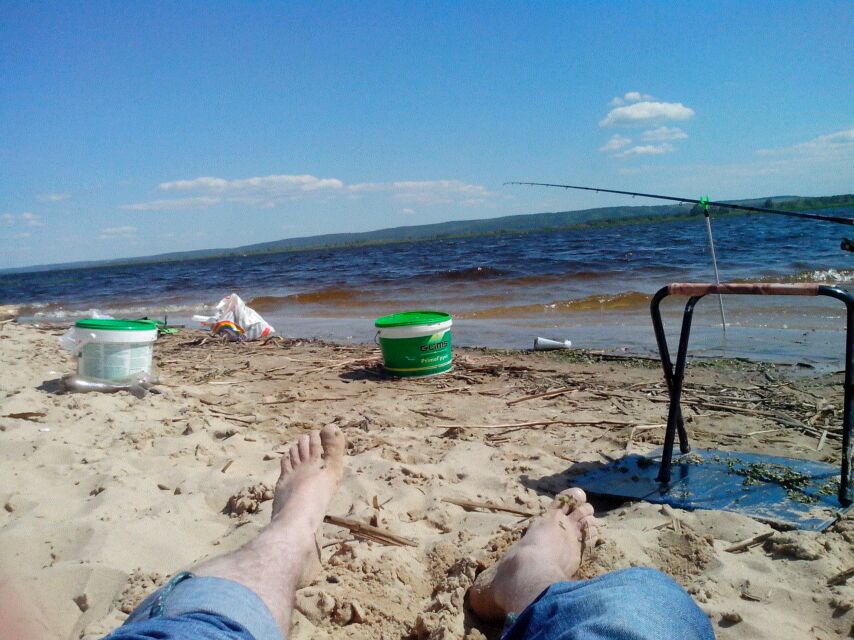 Всего на донку было около 10 поклевок, реализовано 5. В районе 8 часов клев леща сошел на нет, но и мелочь не беспокоила. Оказалось подошел сазан, много сазана. Реализовано на удочку 5 поклевок, поводок к тому времени стоял 0.14 (крупнее не было). Огромное количество сходов и обрывов. Два сазана по 2 кг выводил минут по 15.