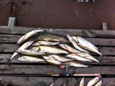 Еще один недолгий выход с 01:00 до 01:15 и все клыкастый покинул мель, под утро еще сход у StasOk, щуки и он же поймал жереха килошика на мелкий воблерок.