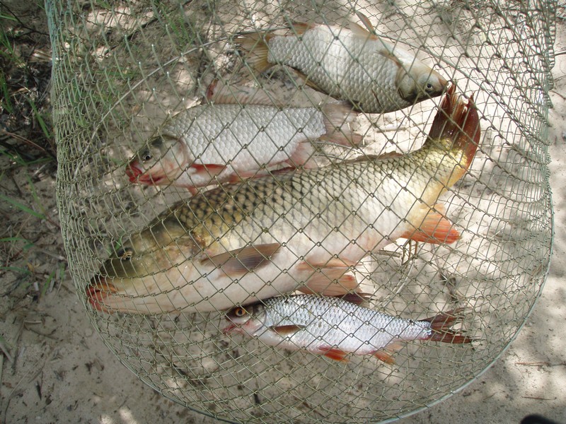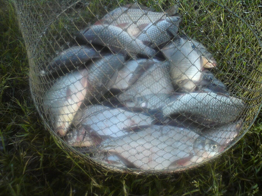 и понеслось-за два часа без передыху тягали сенчика,карасей и сорогу.И причем все довольно-таки съедобного размера.По хищнику тишина.Из всех мудреных прикормов и снастей работали исправно прикорм-конопля+каша из гороха,пшена,овса и перловки+клубничный кисель,черь и поплавковая удочка.....-фидер,дунаев,опарыш,кукуррруза,блесна-все молчало как рыба об лед.В итоге выловлено по 5 кг карасей и т.д. на брата+три сети(жечь было некогда,привез в город и отнес до мусорки).Воды оооочень много,мутновата.Ветер в перемешку с солнышком прибавили загару-сейчас хожу по соседям пенсионерам в своей хрущевке и раздаю карасей-сенчик засолен к пиву)))Доволен как слон!!!