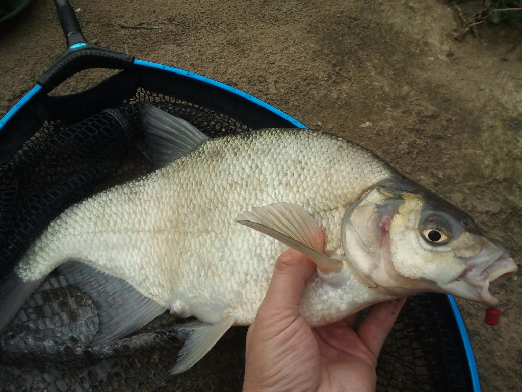 Первые забросы я сделал наверно к 7 часам...начал ловить с бутерброда червь/опарыш и с поп-апов...в течении получаса старался сделать как можно больше забросов...с целью просто доставить корм до точек и на очередном забросе на поп-ап уверенная поклевка с четким отыгрыванием вершинки...он? да!...да такой буйный...памятуя о проблемах с бровкой на правом берегу вскакиваю на камень...задираю фидер вверх и вываживаю рыбу...подсачиваю хорошего подлещика....хорошее начало...