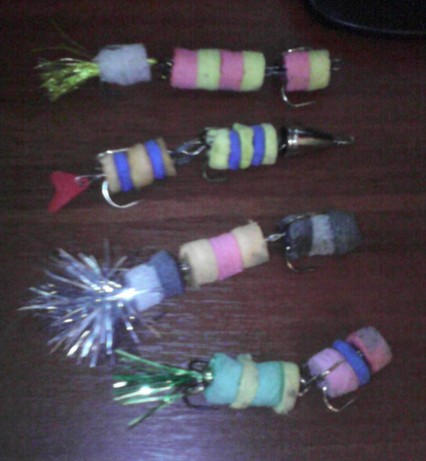 я хвостики делаю из мишуры елочной новогодней (не теряет пышность в воде ,не мокнет) с люрекса чет не понравилось.