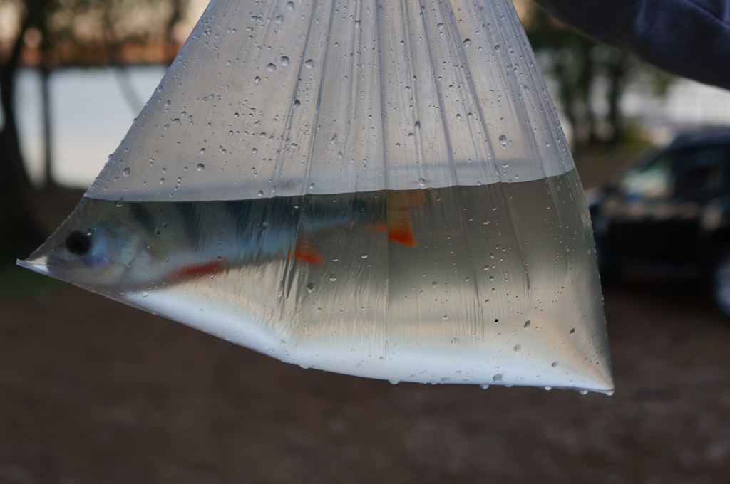 Вечером в полутьме три хороших подлещика под финскую водочку (дрянь). Утром один карась и ... балалайка. Точнее бычок с мизинец. Штук 15 за день