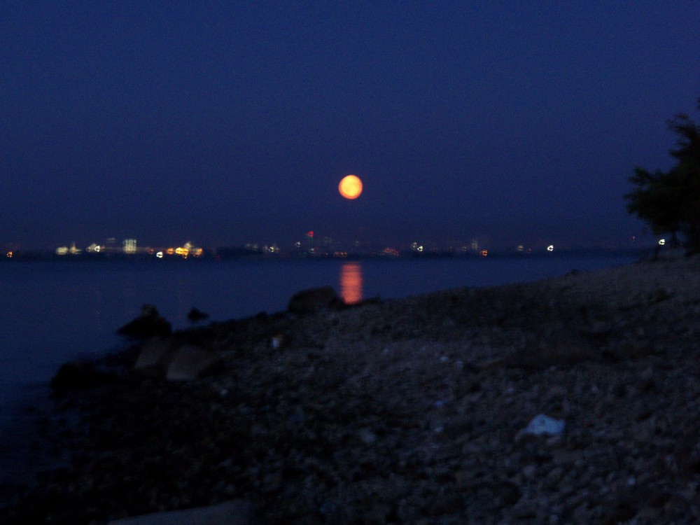 - луна взошла кровавая и освещала нам рыбалку очень хорошо, аж тень падала от предметов;