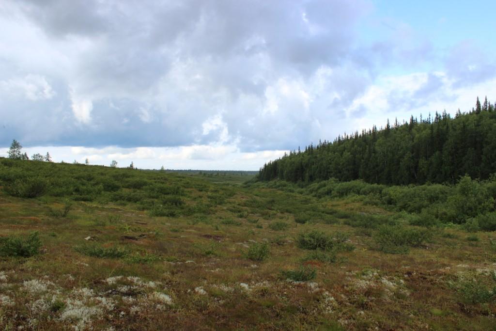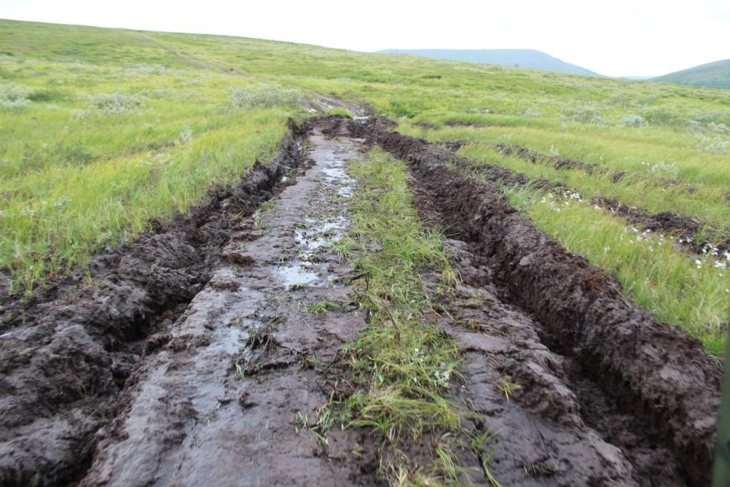 Дорога проходима только для гусеничной техники, ну либо для чего то еще очень продвинутого. В этом месте пришлось завалить еще несколько елок. Вездеходка, по которой мы шли единственная дорога в этих краях (не считая железки) и идет до самой Воркуты.