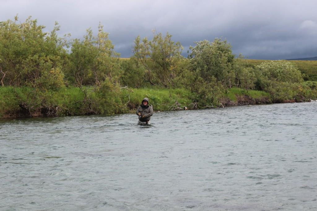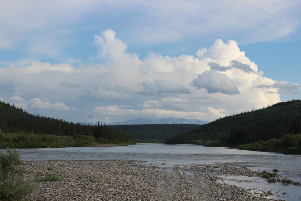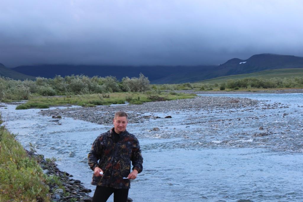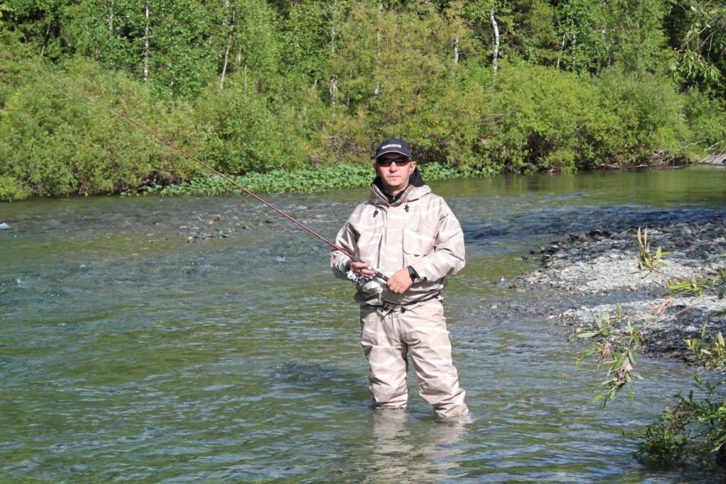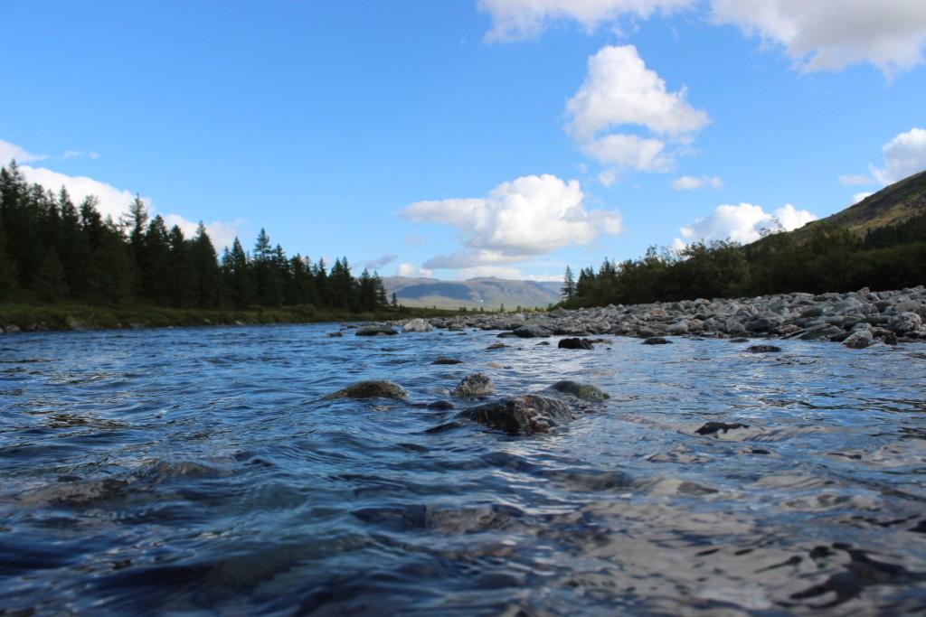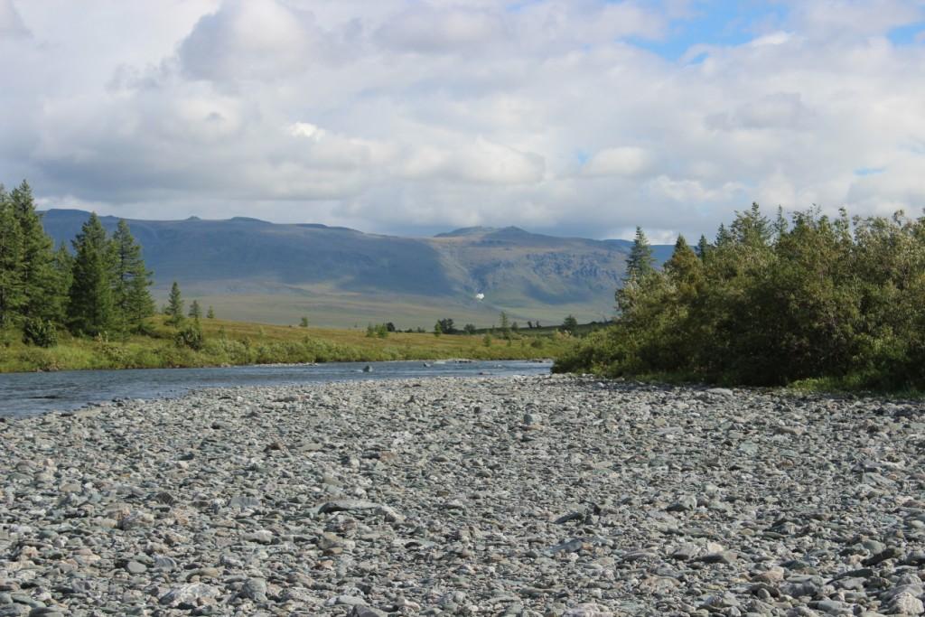Возникла необходимость подтянуть гуслю, поэтому остановились на островке посреди какой то речки, решив заодно пообедать. Часть народу ушла рыбачить, Хоттабыч поймал первого хариуса и по традиции искупался.