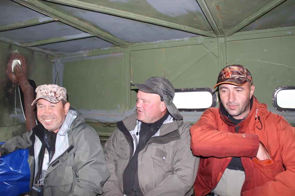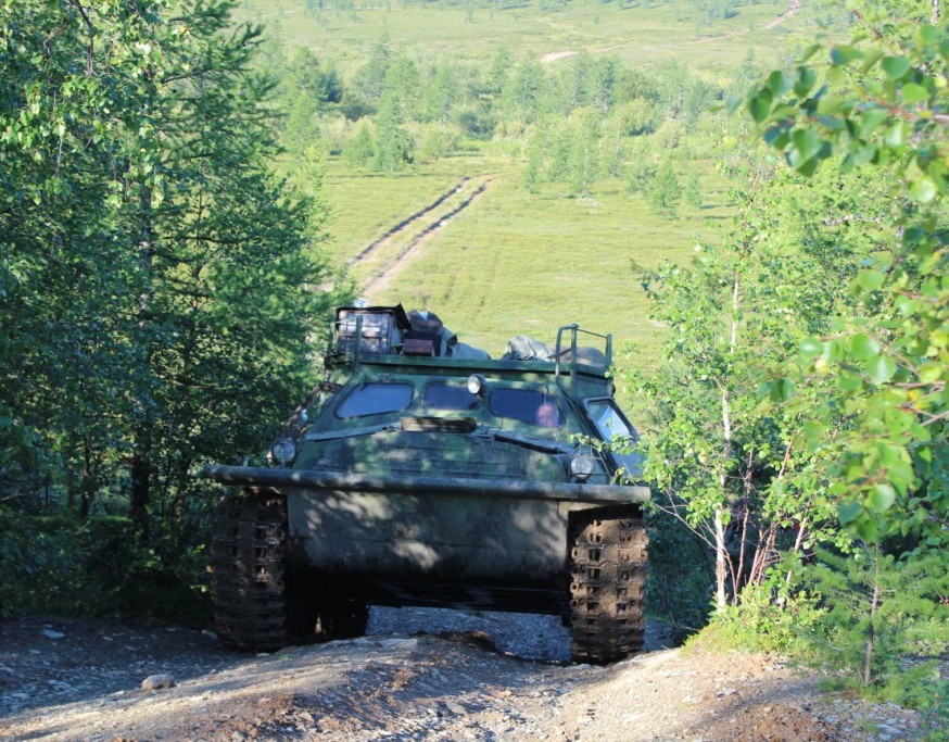 Большая часть нашей команды ехала на броне, что имело неоспоримые преимущества в виде возможности осматривать местную природу, да и не так шумно было. Имелись и другие ништяки. Только Эдик всю дорогу внутри ехал. Мы же внутрь залезли только под конец второго дня, когда дождик превратился в сплошной ливень. Двигались не быстро, средняя скорость была наверное километров 5 в час.