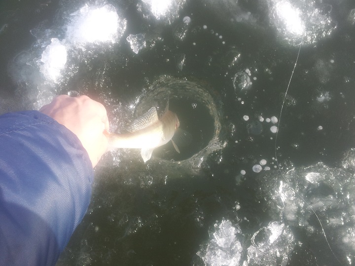 было ровно три поклёвки .все с ударом с одной лунки,в течении пяти минут с 7.15 до 7.20