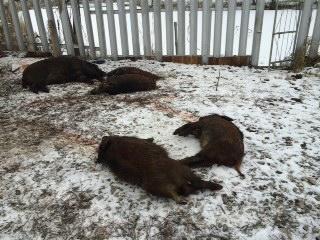 по всем пунктам поясняю , до меня зверь не дошёл метров 70 , все добыты с гладких стволов,  загонщиками .( в этот раз не свезло  пострелять) подранков не добирали все падали сразу.