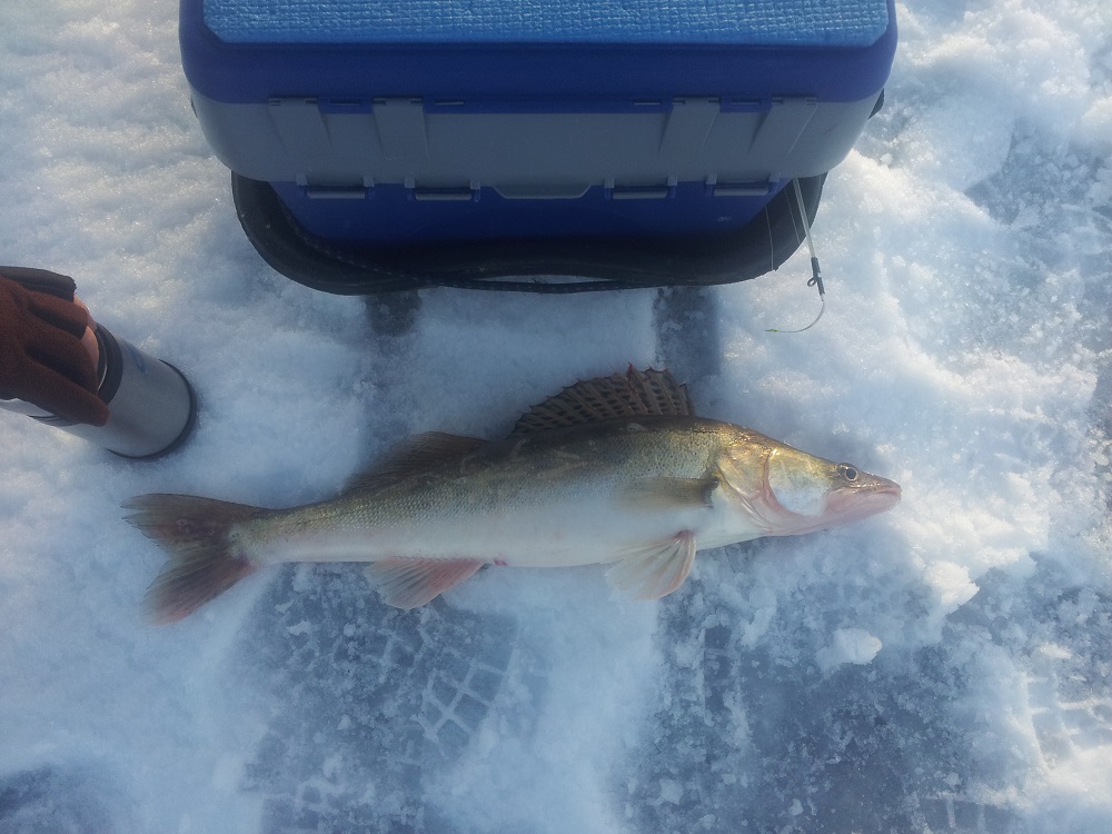 и упитанный судак уже на льду. Разбурил пятак, несколько весьма хороших судаков взял с него, поблизости никого, даже отец не успел добежать. Рас строился он
