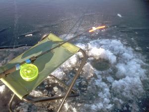 На первой же лунке сразу же поклевка,потом еще и еще... Клевало часов до 11,потом стихло.тяга пропала и рып отошел. Переместился метров на 300 ниже, здесь тяга была приличная,уносила метра на 3 прыщ 6-ку.Пробурил лунок пять и до конца рыбалки ходил по ним. Ловил на тот же прыщ "на стравку". Какой раз убеждаюсь в эффективности этого метода. Поклевки с ударом в конце спуска,четкие в руку. Судак до кило и крупный берш, приятно было ловить.Сидели до 15-30.Уходили с клева, что бы не опоздать на буран. Улов достаточный .Рыбалкой доволен