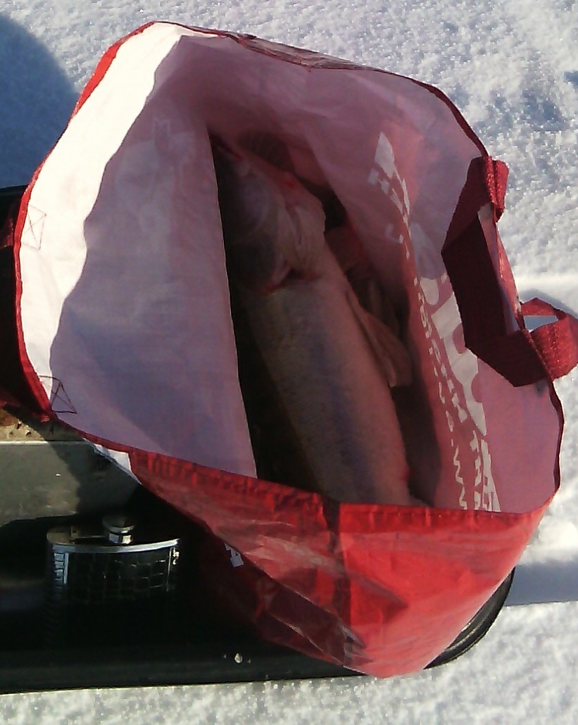 с тягой. Перепробовал всё, что более менее доставало дно - итог очень печальный... одна поклёвка = один бёрш грамм на 250. На льду с 7.30 и до 15.30.Ждал,надеялся и верил... Напрасно...