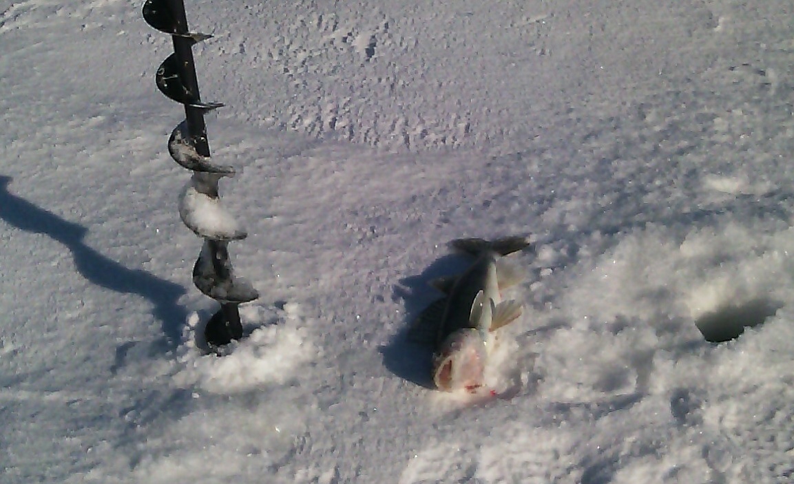 В тот же день на мели против ПОлянок с утра по несколько нано бершей.Сместился на 8:-)10 метров тяга дурная,пробовал все,что было,полный игнорирование.Примерно в обед товарищ достает килошного сударя,у меня две холостых поклевки на самодельного адмирала,на третьей за самый край пасти цапанул я его и уже в лунке за башку достал,килошник.Товарищ взял еще поменьше и все.После подъехали ,в километре от берега мужики сидели весь день,глубина метров 10 тяга просто жуть,ловили мелкого берега.Присели,не на долго,достал трех бершей и тяга стала еще сильней,мои снасти дна ваще не доставать.На том и закончили.По секрету скажу,позавчера,на меляке знакомые не плохо порыбачили,для февраля конечно.Если,кто видел странный снегоход с двумя лыжами и двое корыт,это мы мотособака с разборный лыжным модулем.ARIKEI писал(а):Сегодня Шураны, под церковью. Глубины от 5 до 30мс тягой. Перепробовал всё, что более менее доставало дно - итог очень печальный... одна поклёвка = один бёрш грамм на 250. На льду с 7.30 и до 15.30.Ждал,надеялся и верил... Напрасно...
