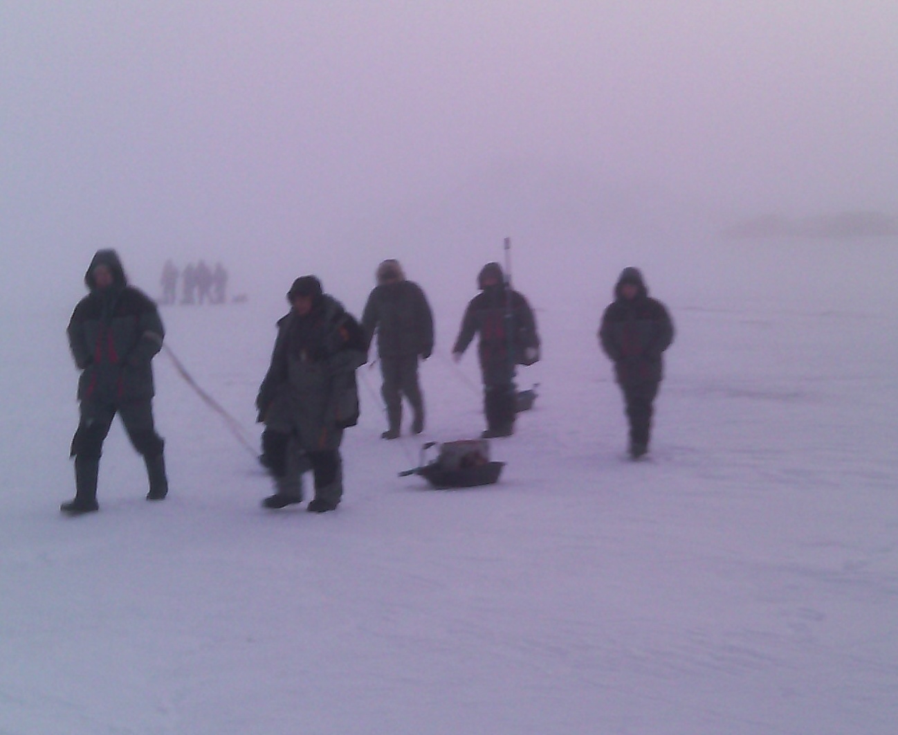 Прибыв на первую точку, сверлю пару лунок, глубина порядка 13м и очень сильная тяга, блесна 20-25 гр. постоянно стаскивается, приходилось постоянно стравливать леску.